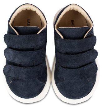 Δερμάτινο Mονόχρωμο Σνίκερ με Τριπλή Μπαρέτα Χρατς από Δέρμα Suede σε Μπλε Χρώμα