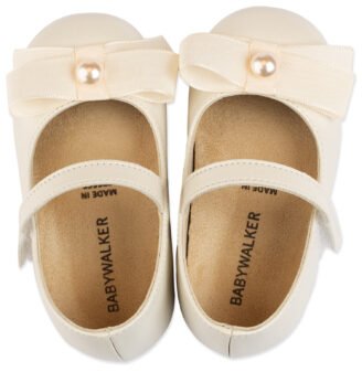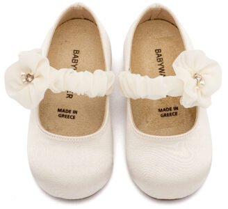 Δερμάτινο Γοβάκι Μονή Μπαρέτα Χρατς με Σατέν Χειροποίητο Φιόγκο σε Εκρού Χρώμα