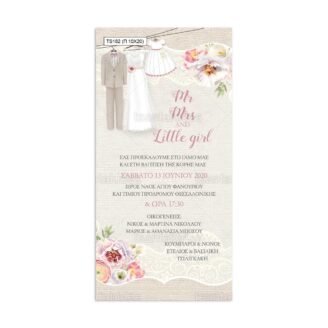 Προσκλητήριο γάμου παπυράκι εκτυπωμένο με θέμα ρομαντικό ύφος