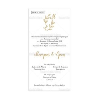 Προσκλητήριο γάμου παπυράκι εκτυπωμένο με θέμα greenery design και χρυσαφί λεπτομέρειες
