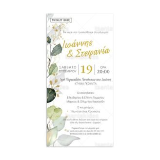 Προσκλητήριο γάμου παπυράκι εκτυπωμένο με θέμα τον ευκάλυπτο