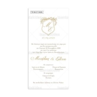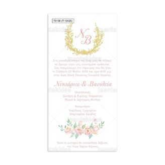 Προσκλητήριο γάμου παπυράκι εκτυπωμένο με θέμα λογότυπο σε στεφανάκι