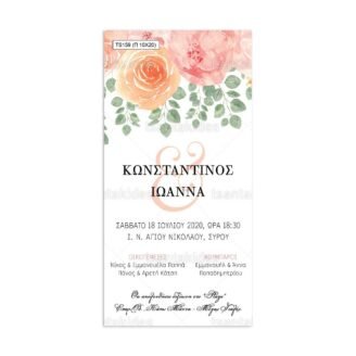 Προσκλητήριο γάμου παπυράκι εκτυπωμένο με θέμα floral σχεδιασμό