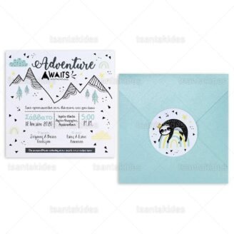 Προσκλητήριο βάπτισης για αγόρι εκτυπωμένο με θέμα Adventure Awaits