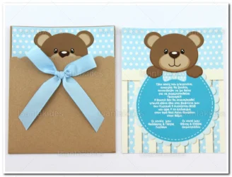 Προσκλητήριο βάπτισης για αγόρι εκτυπωμένο με θέμα Teddy Bear