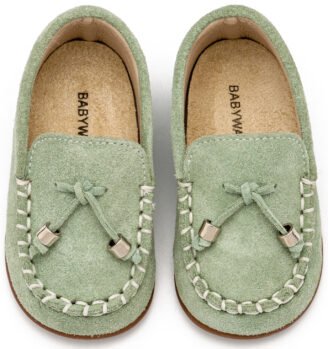 Καστόρινο Μοκασίνι με Φουντάκια από Δέρμα Κρούτα Suede σε Μέντα Χρώμα
