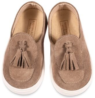 Καστόρινο Δετό Loafer με Φουντάκια και Μεταλλική Λεπτομέρεια από Δέρμα Suede σε Μπεζ Χρώμα
