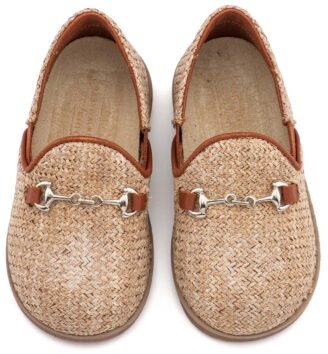 Loafers απο Ύφασμα Ψάθα με Δερμάτινες Λεπτομέρειες σε Μπεζ Ταμπά Χρώμα