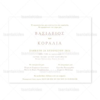 Προσκλητήριο γάμου εκτυπωμένο με θέμα Simplicity Means Elegant