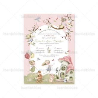 Προσκλητήριο βάπτισης για κορίτσι εκτυπωμένο με θέμα Green Fairies