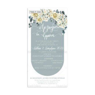 Προσκλητήριο γάμου παπυράκι εκτυπωμένο με θέμα dusty blue floral σχεδιασμό σε οβαλ