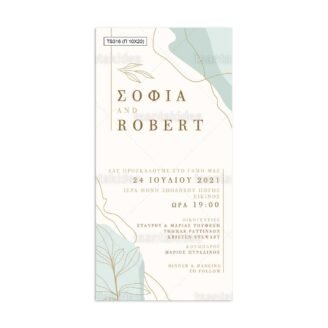 Προσκλητήριο γάμου παπυράκι εκτυπωμένο με θέμα greenery και στοιχεία από κλαδιά και ευκάλυπτο