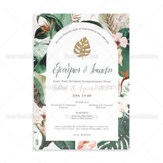Προσκλητήριο γάμου εκτυπωμένο με θέμα Tropical Glam