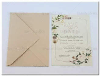 Προσκλητήριο γάμου εκτυπωμένο με θέμα Floral Save The Date