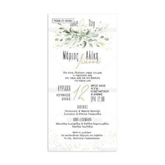 Προσκλητήριο γάμου παπυράκι εκτυπωμένο με θέμα Greenery
