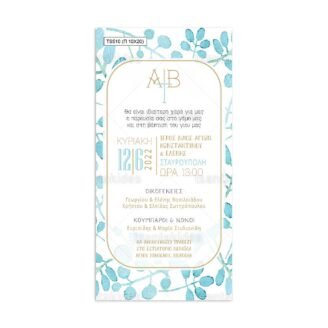 Προσκλητήριο γάμου παπυράκι εκτυπωμένο με θέμα Sky Blue Leaves