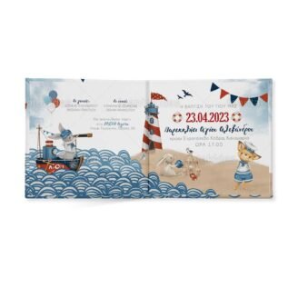 Προσκλητήριο σκληρό καπάκι, παραμυθάκι μικρό, εκτυπωμένο με θέμα Sea Adventures