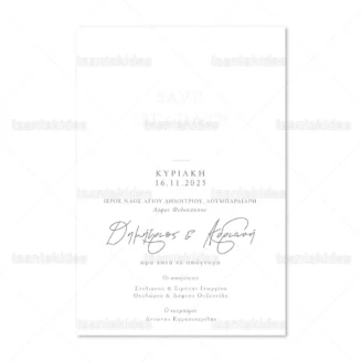 Προσκλητήριο γάμου εκτυπωμένο με θέμα Save The Date