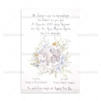 Προσκλητήριο βάπτισης για κορίτσι εκτυπωμένο με θέμα Floral Moon