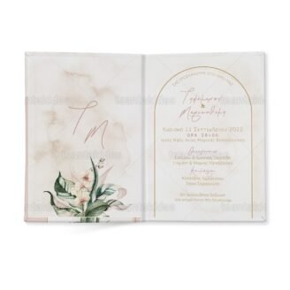 Προσκλητήριο σκληρό καπάκι μεγάλο εκτυπωμένο με θέμα Palm Wedding