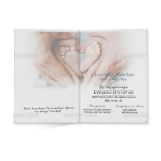 Προσκλητήριο σκληρό καπάκι μεγάλο εκτυπωμένο με bebe πατουσάκια