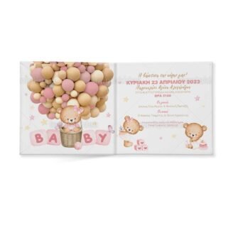 Προσκλητήριο σκληρό καπάκι, παραμυθάκι μικρό, εκτυπωμένο με θέμα Teddy Bear with Balloons