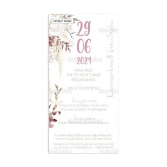 Προσκλητήριο γάμου παπυράκι εκτυπωμένο με θέμα Floral pampas