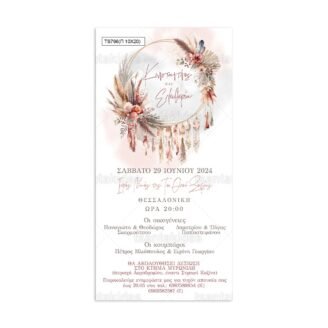 Προσκλητήριο γάμου παπυράκι εκτυπωμένο με θέμα Dusty pink boho pampas