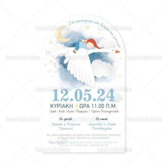 Προσκλητήριο βάπτισης για κορίτσι εκτυπωμένο με θέμα Birdy