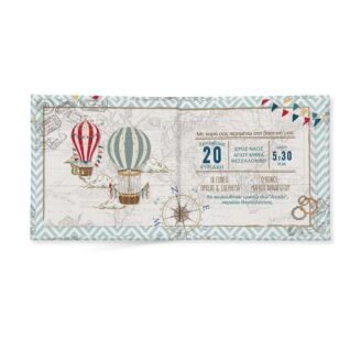 €25Προσκλητήριο βάπτισης παπυράκι εκτυπωμένο με θέμα το αερόστατο