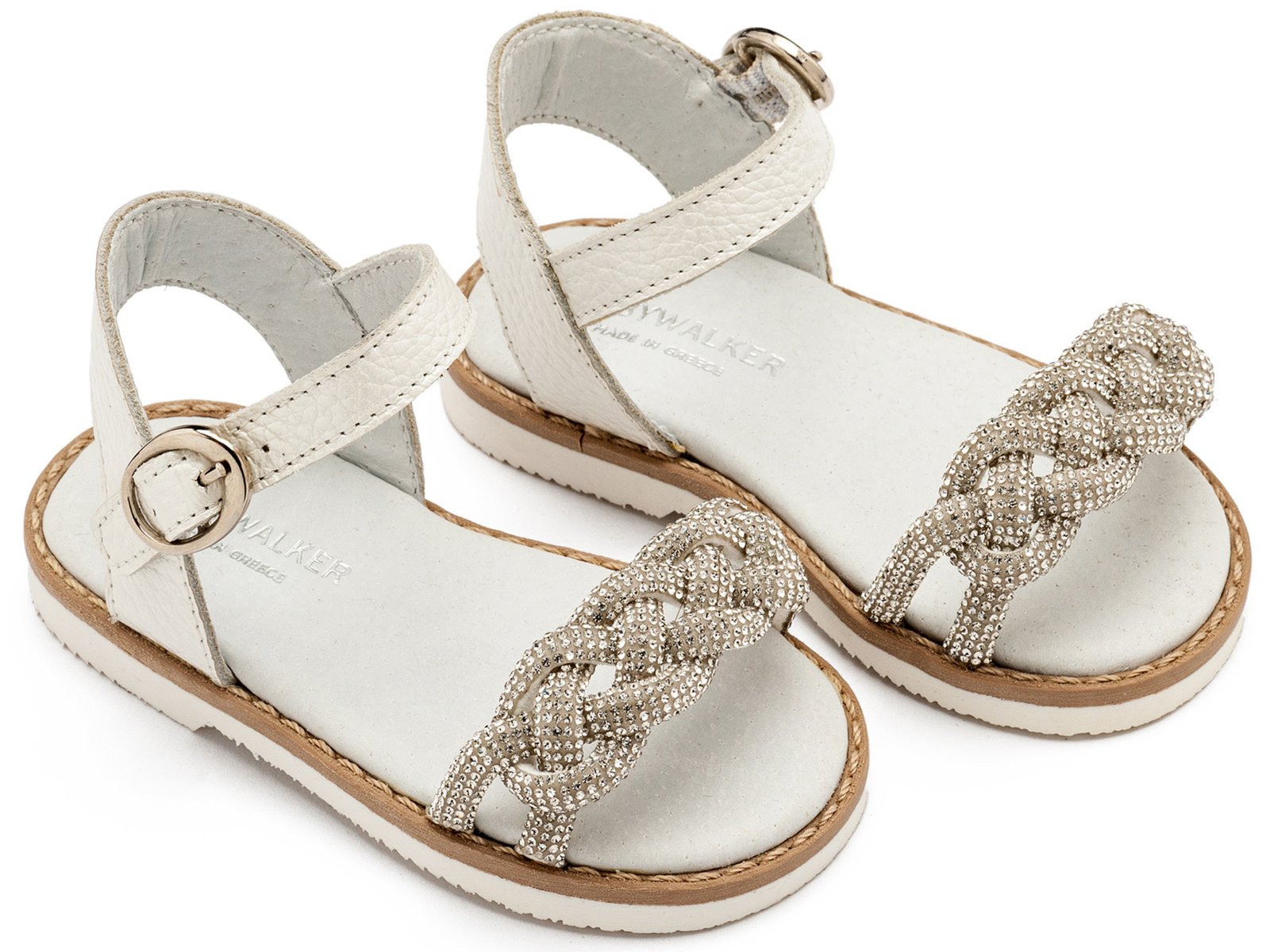 Δερμάτινο Σανδάλι με Διακοσμητική Πλεξούδα Μπροστά σε λευκό Χρώμα
