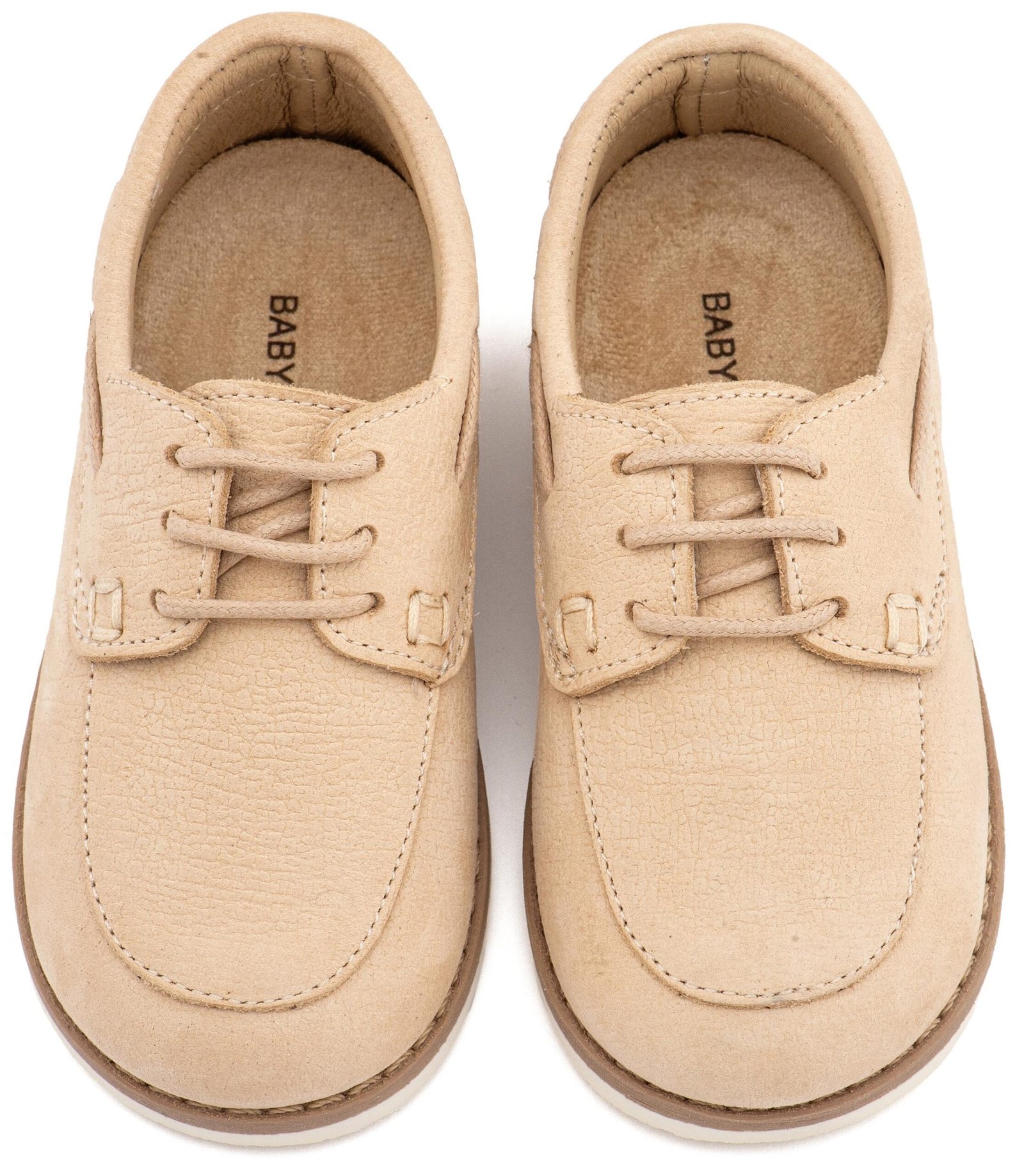 Δετό Δερμάτινο Μοκασίνι από Δέρμα Ναμπούκ με Κορδόνι σε Μπεζ Χρώμα