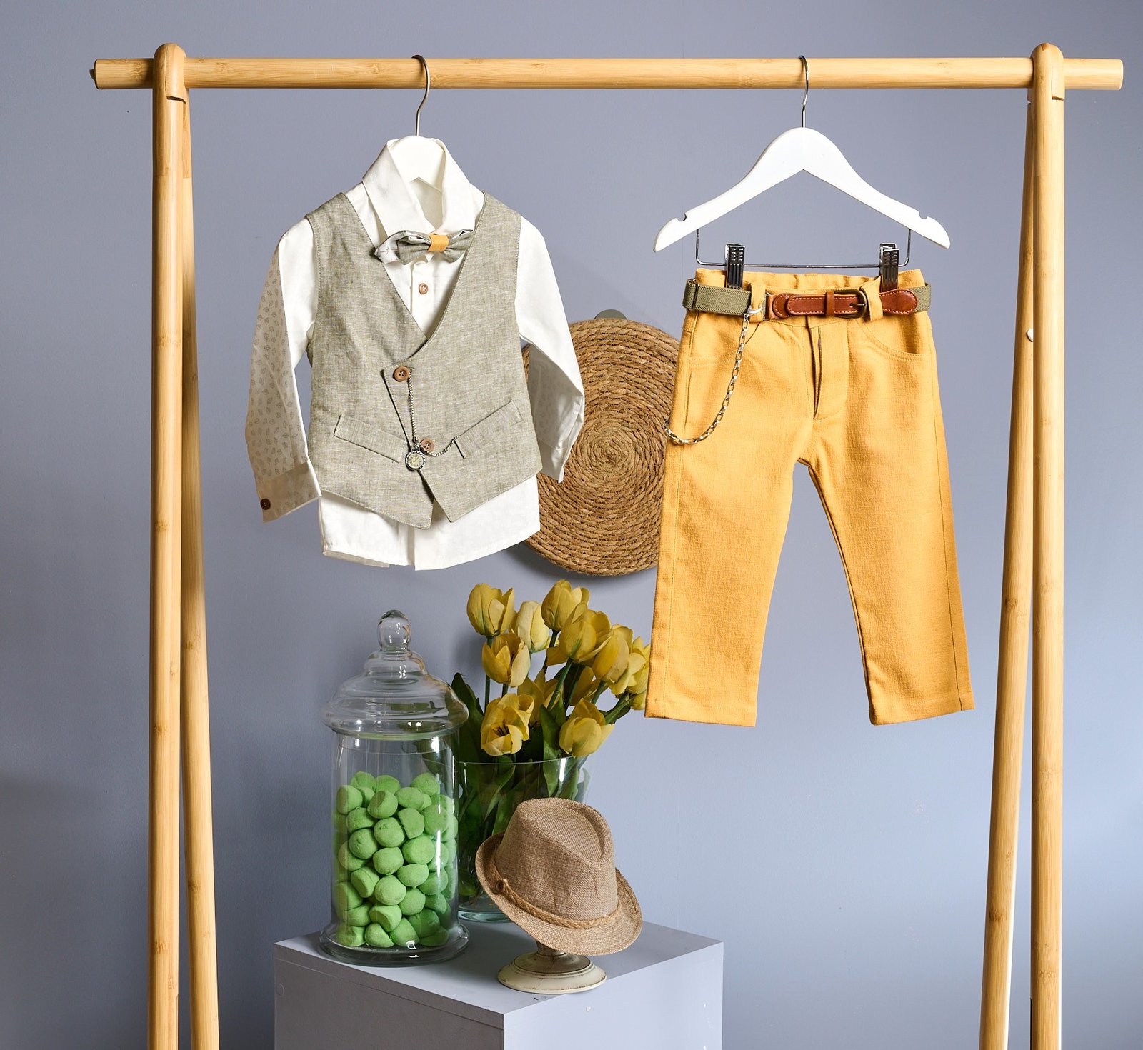 FA75.1062419 Ντύσιμο με γιλέκο πράσινο & κίτρινο παντελόνι