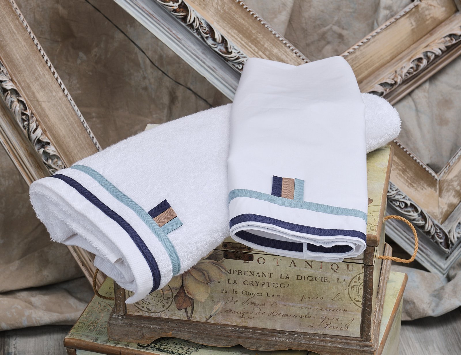 FK2013.232021 Λαδόπανα λευκά με τρέσα ραφ μπλε