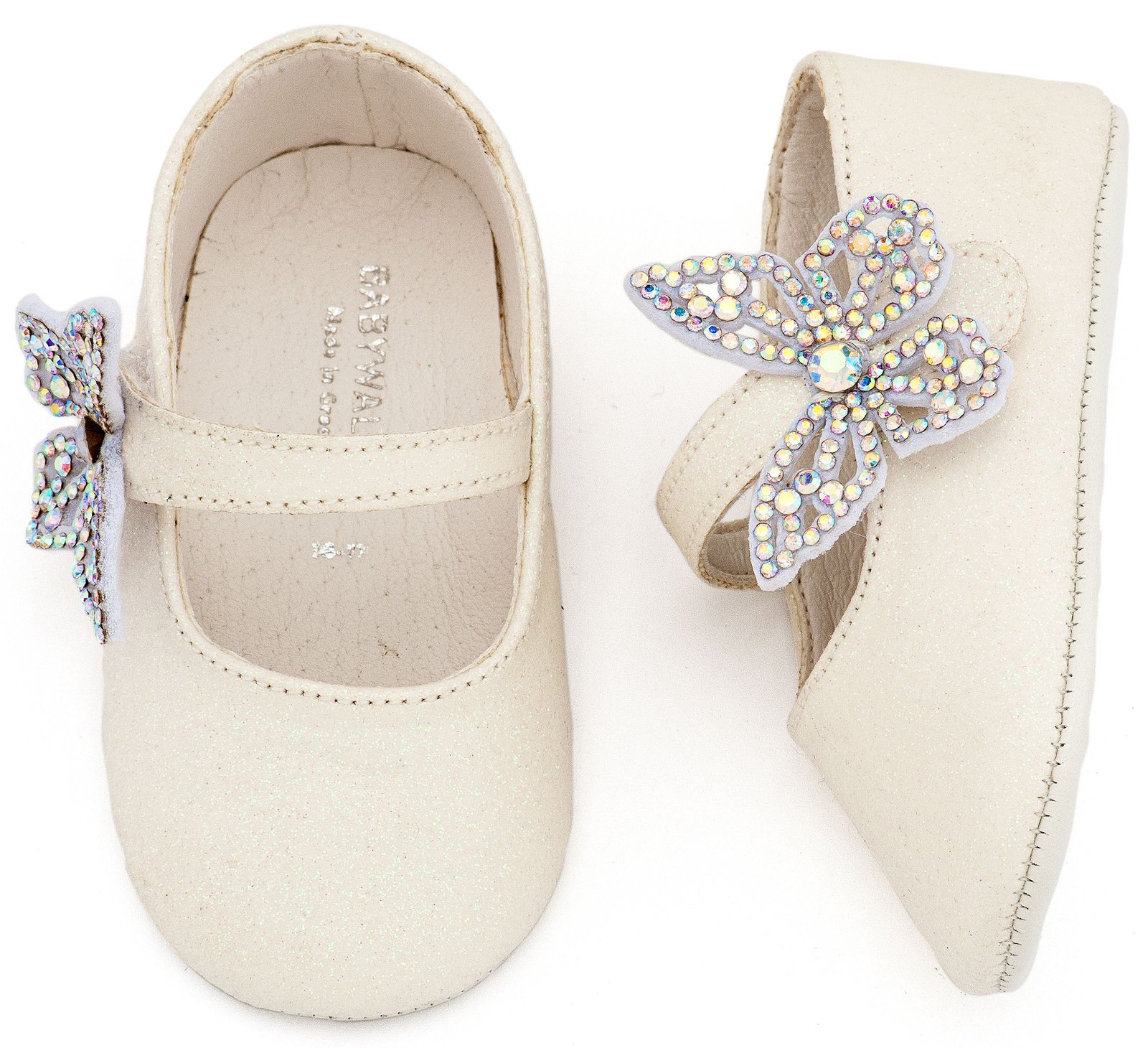 Υφασμάτινο Γοβάκι Μονή Μπαρέτα Χρατς με Στρασένια Πεταλούδα σε Λευκό Χρώμα