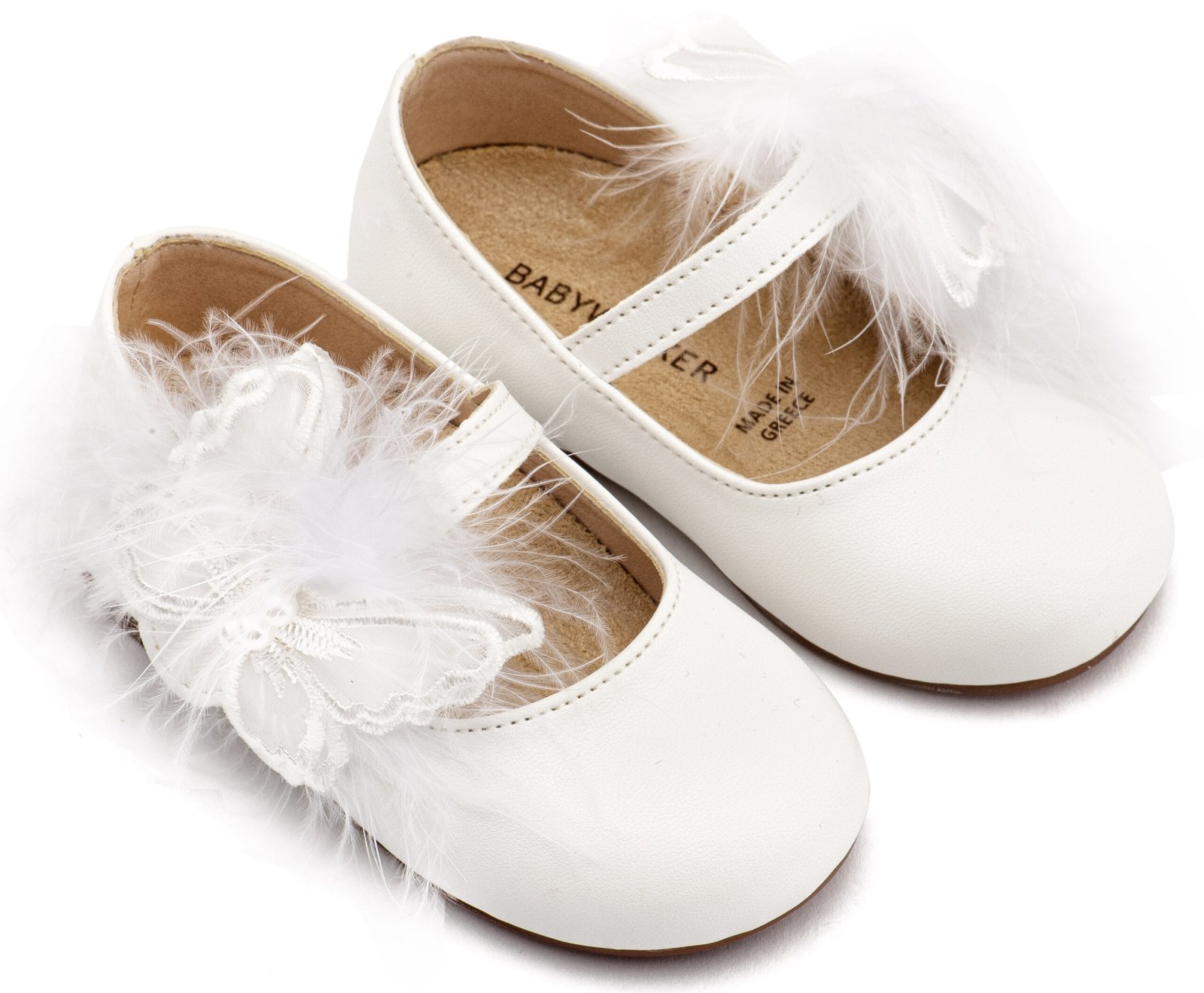 Δερμάτινο Γοβάκι Μονή Μπαρέτα με Χειροποίητο Διακοσμητικό Πεταλούδα και Πούπουλα σε Λευκό Χρώμα