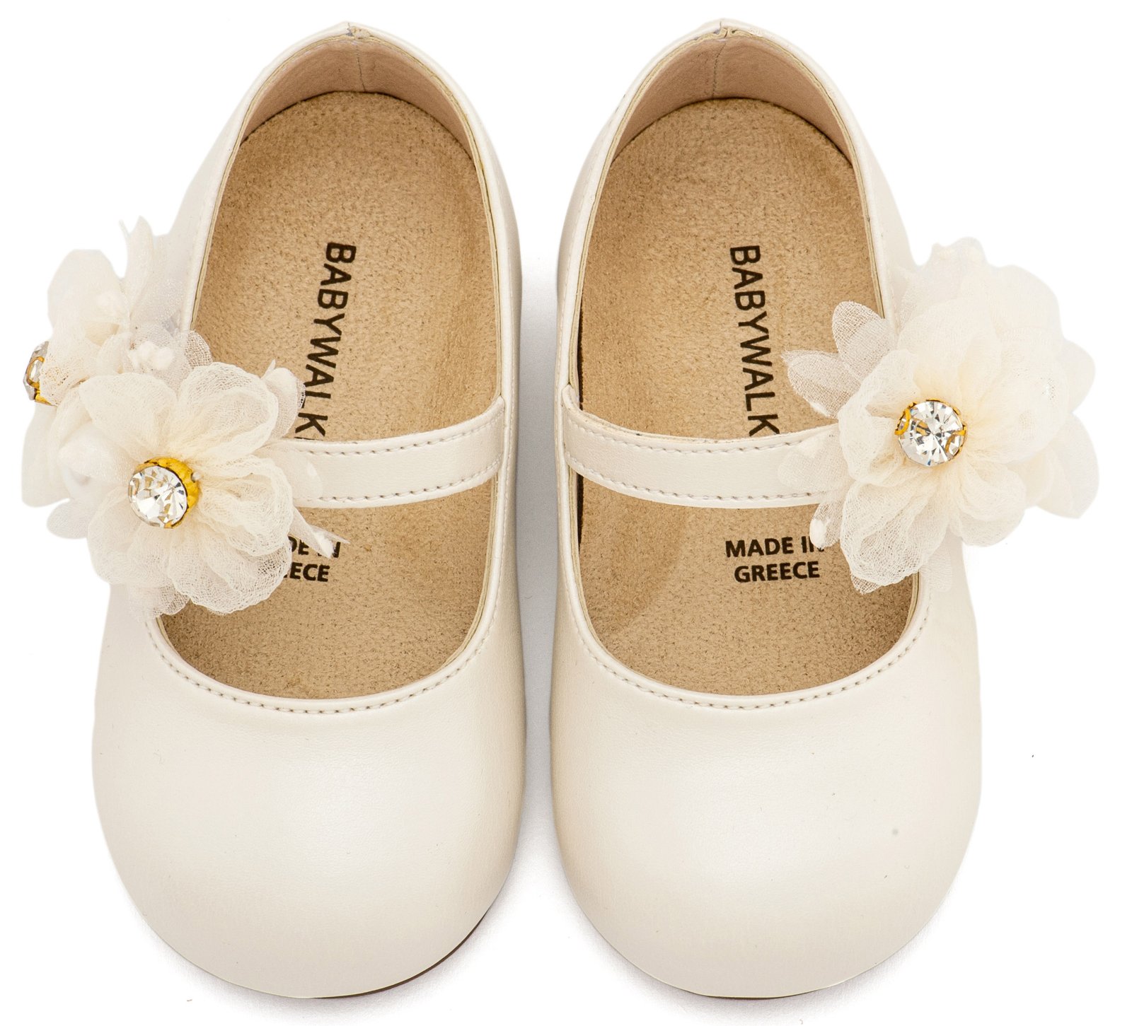 Γοβάκι απο Συνθετικό Δέρμα Μονή Μπαρέτα με Διακοσμητικό απο Λουλούδια Οργάντζας σε Εκρού Χρώμα