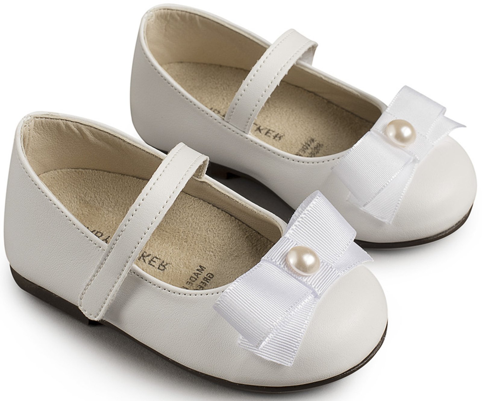 Δερμάτινο Γοβάκι Μονή Μπαρέτα με Ταφταδένιο Φιόγκο από Συνθετικό Δέρμα σε Λευκό χρώμα