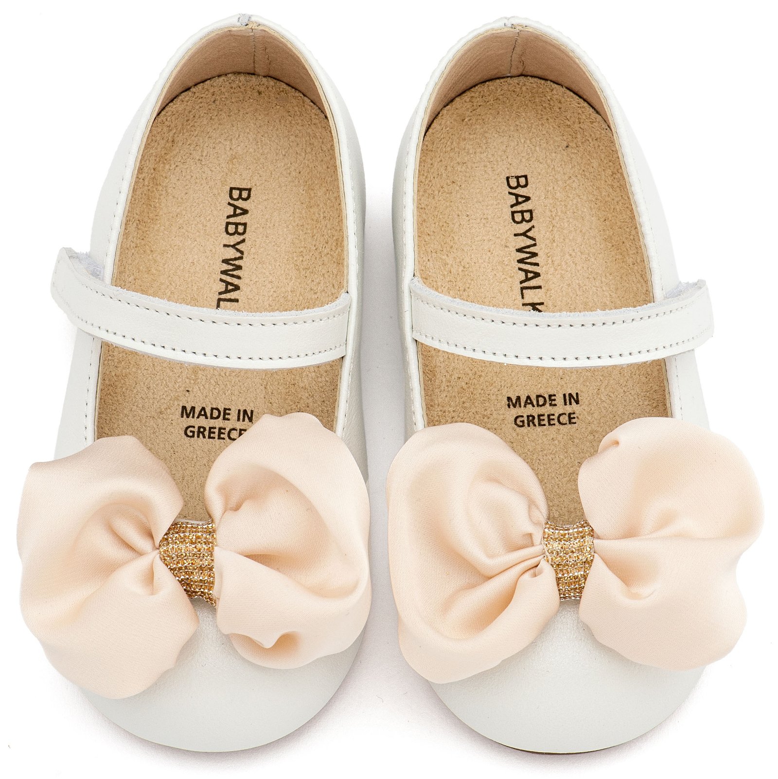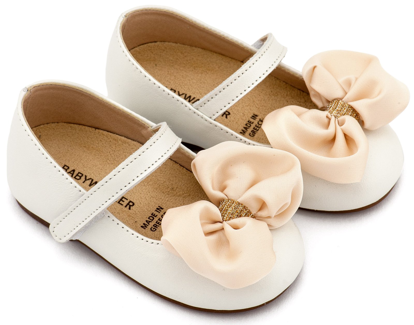 Δερμάτινο Γοβάκι Μονή Μπαρέτα Χρατς με Σατέν Χειροποίητο Φιόγκο σε Εκρού Χρώμα