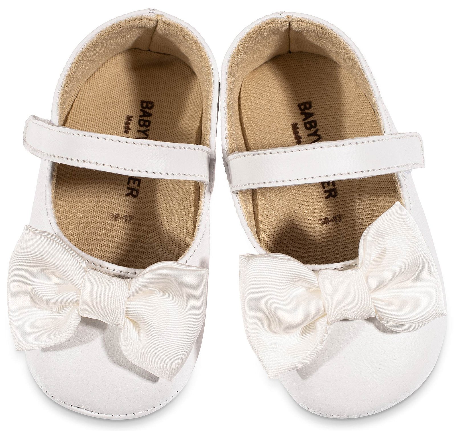 Δερμάτινο Γοβάκι Μονή Μπαρέτα με Υφασμάτινο Χειροποίητο Φιογκάκι σε Λευκό Χρώμα