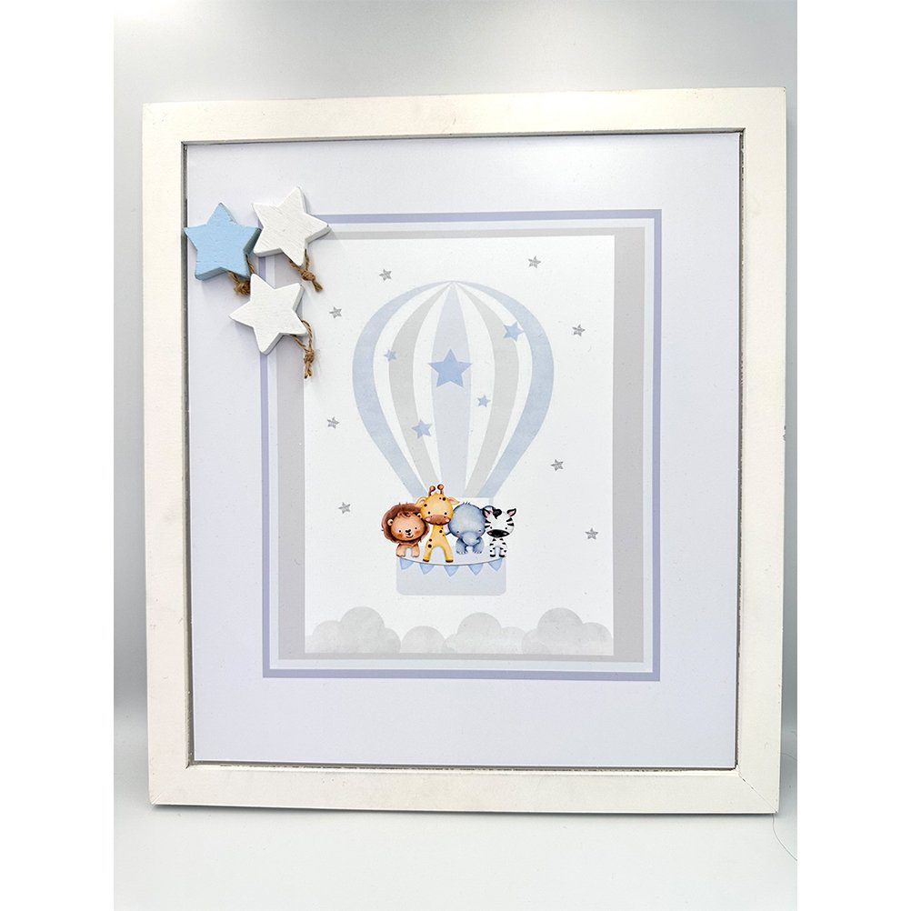 Κάδρο ευχών με ζωάκια σε αερόστατο και αστεράκια ΤΡ49Α131