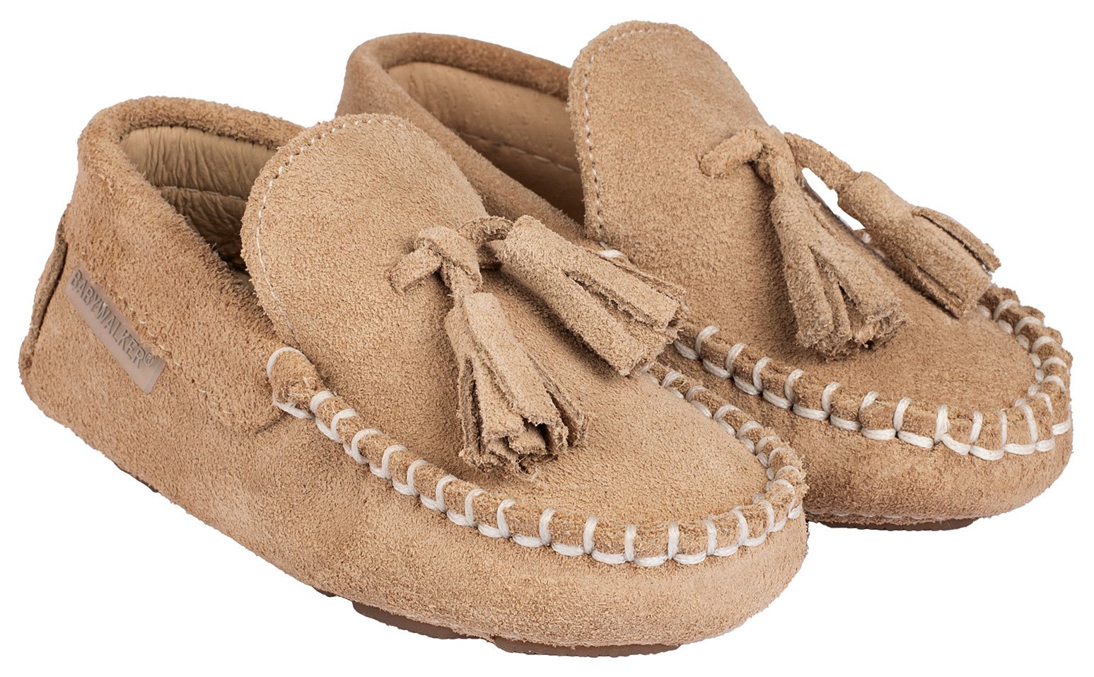 Καστόρινο Μοκασίνι με Φουντάκια από Δέρμα Κρούτα Suede σε Μπεζ Χρώμα