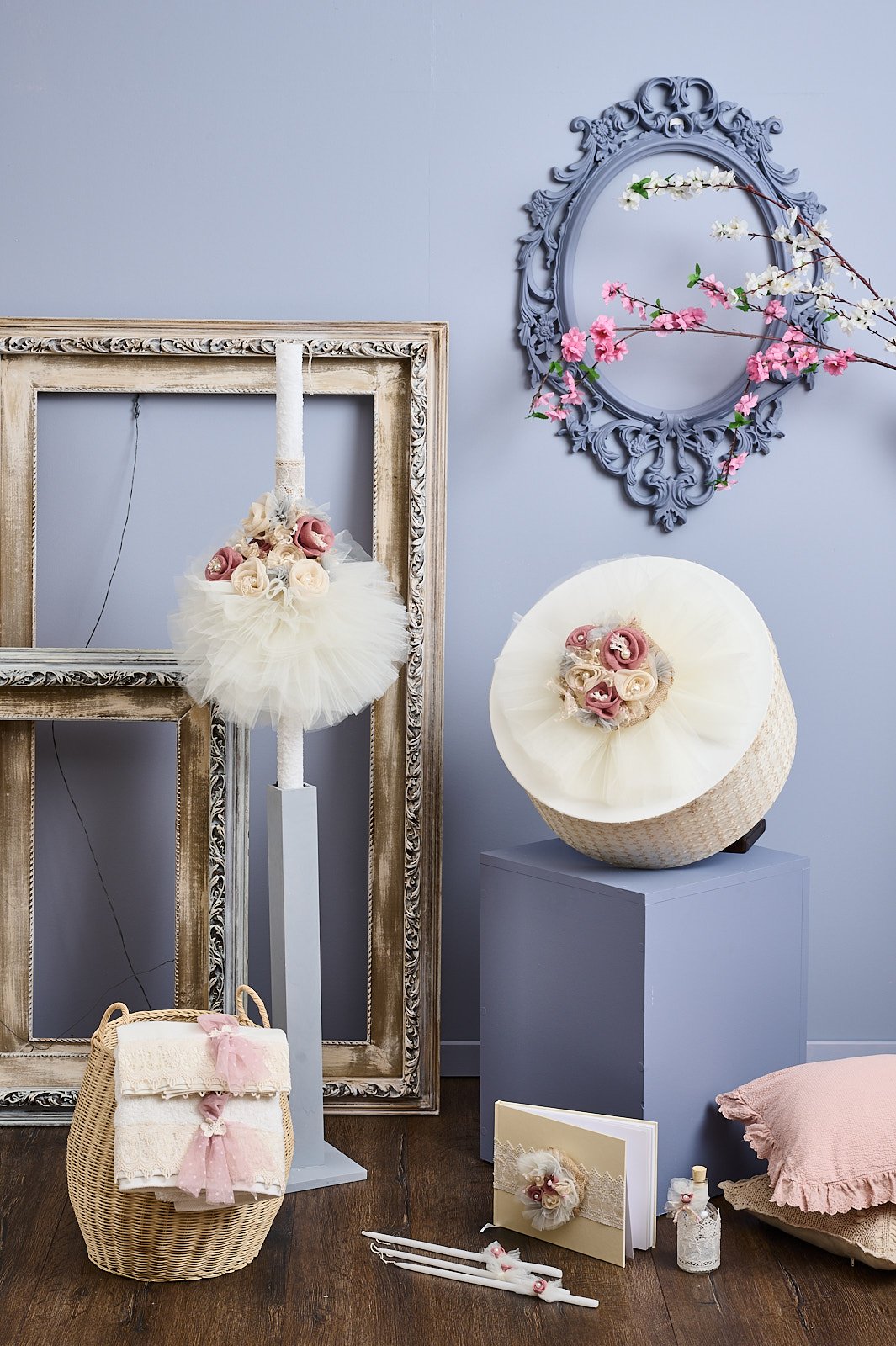 Συνδυάζεται απόλυτα με τη λαμπάδα με τη φούντα και τα λουλούδια.