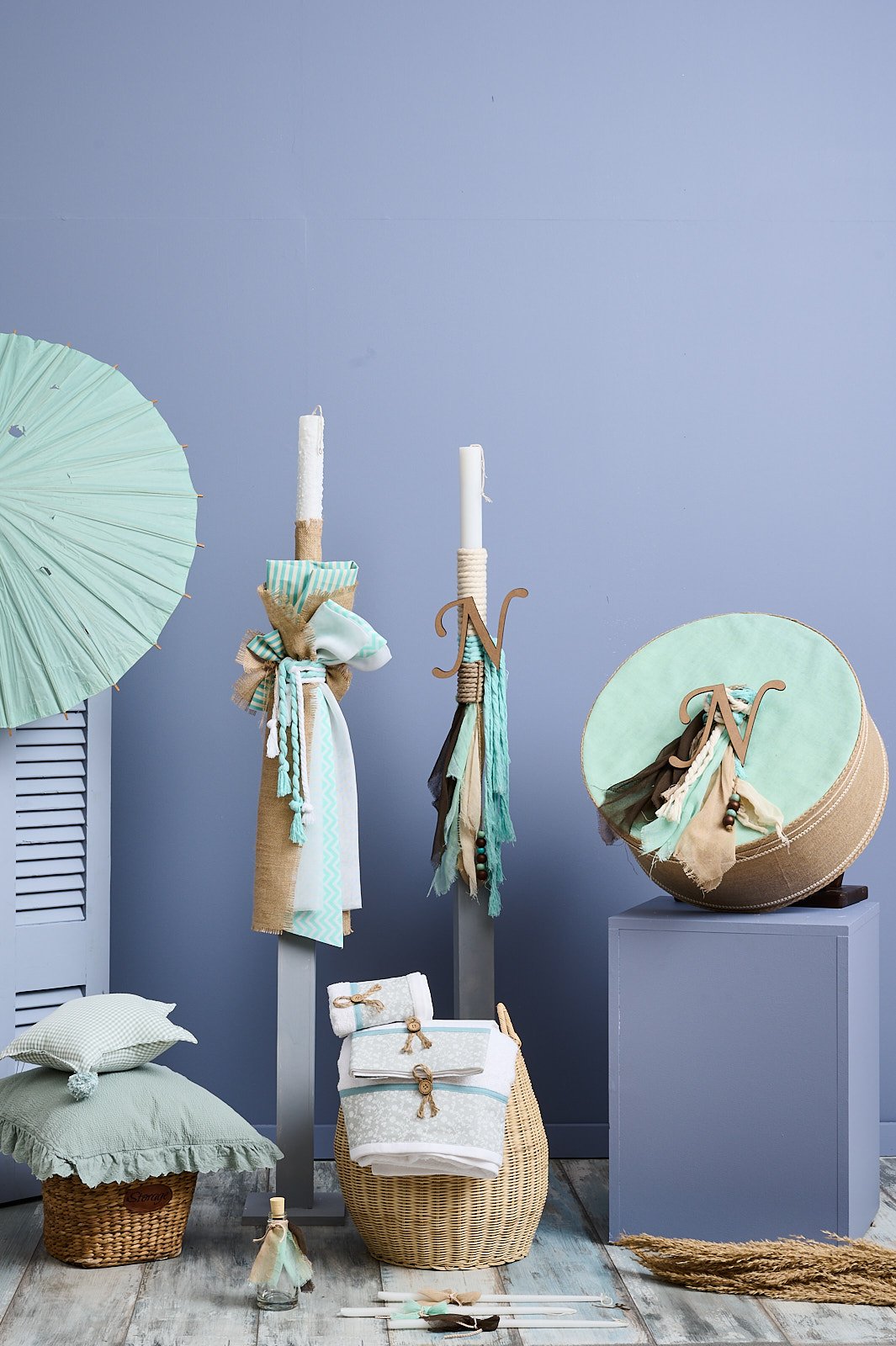 Πακέτο βάπτισης για αγόρι (λαμπάδα, καπελιέρα, λαδόπανα, λαδοσέτ) με όμορφα δεσίματα από βαμβακερά σχοινιά σε βεραμάν, καφέ και εκρού αποχρώσεις και γάζες στα ίδια χρώματα.Ένα μεγάλο, καλλιγραφικό, ξύλινο μονόγραμμα της επιλογής σας ολοκληρώνει το σύνολο. Μπορεί να συνδυαστεί και με τη λαμπάδα με τα δεσίματα και με αυτή με το μονόγραμμα, αφού και οι δυο έχουν την ίδια χρωματική παλέτα.
