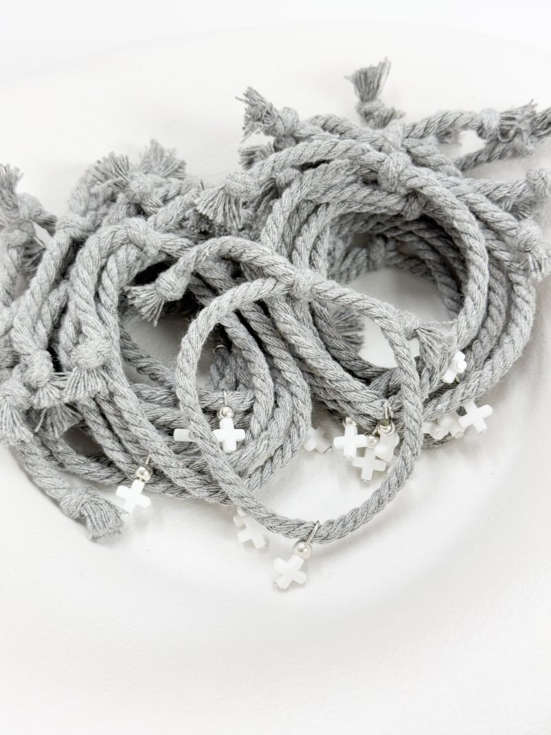Μαρτυρικό βραχιόλι με πλαστικό λευκό σταυρό και στριφτό κορδόνι.