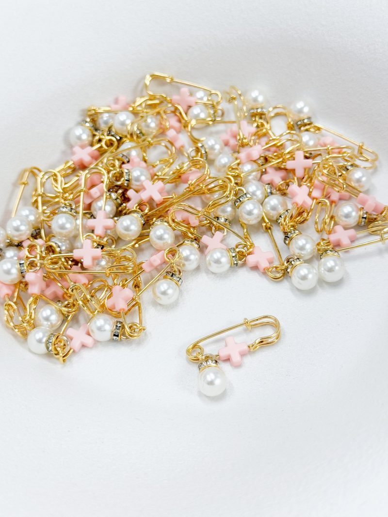 Μαρτυρικό καρφίτσα με πλαστικό σταυρό και πέρλα.