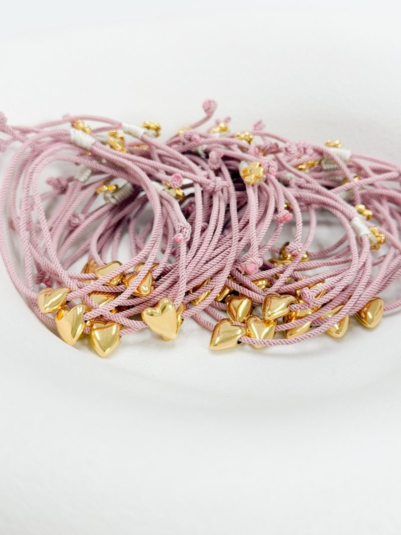 Μαρτυρικό βραχιόλι με επιχρυσωμένο σταυρό, στριφτό κορδόνι και επιχρυσωμένη καρδιά.