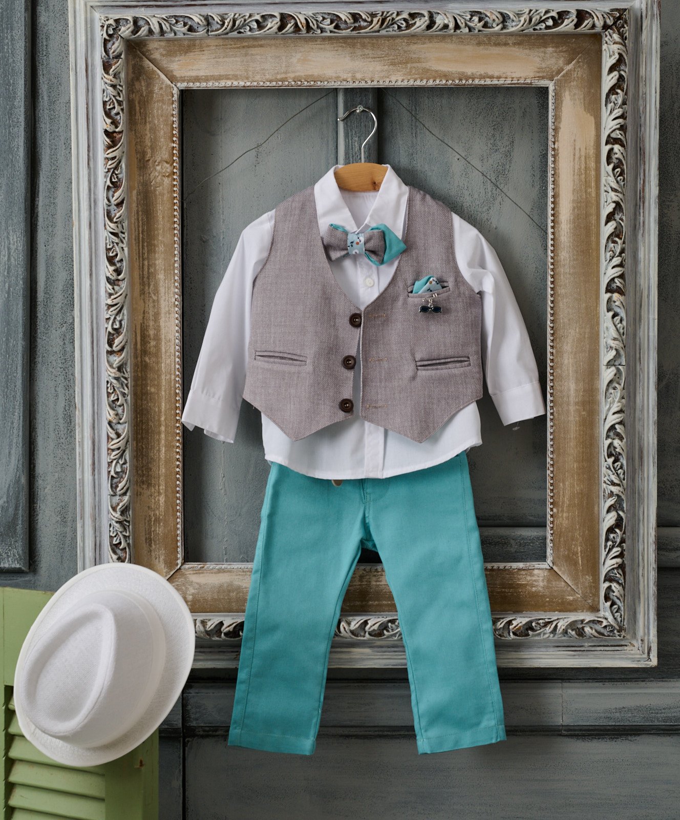 Το σετ αποτελείται από 6 τεμ. (παντελόνι, πουκάμισο, γιλέκο, καπέλο, παπιγιόν και ζώνη)