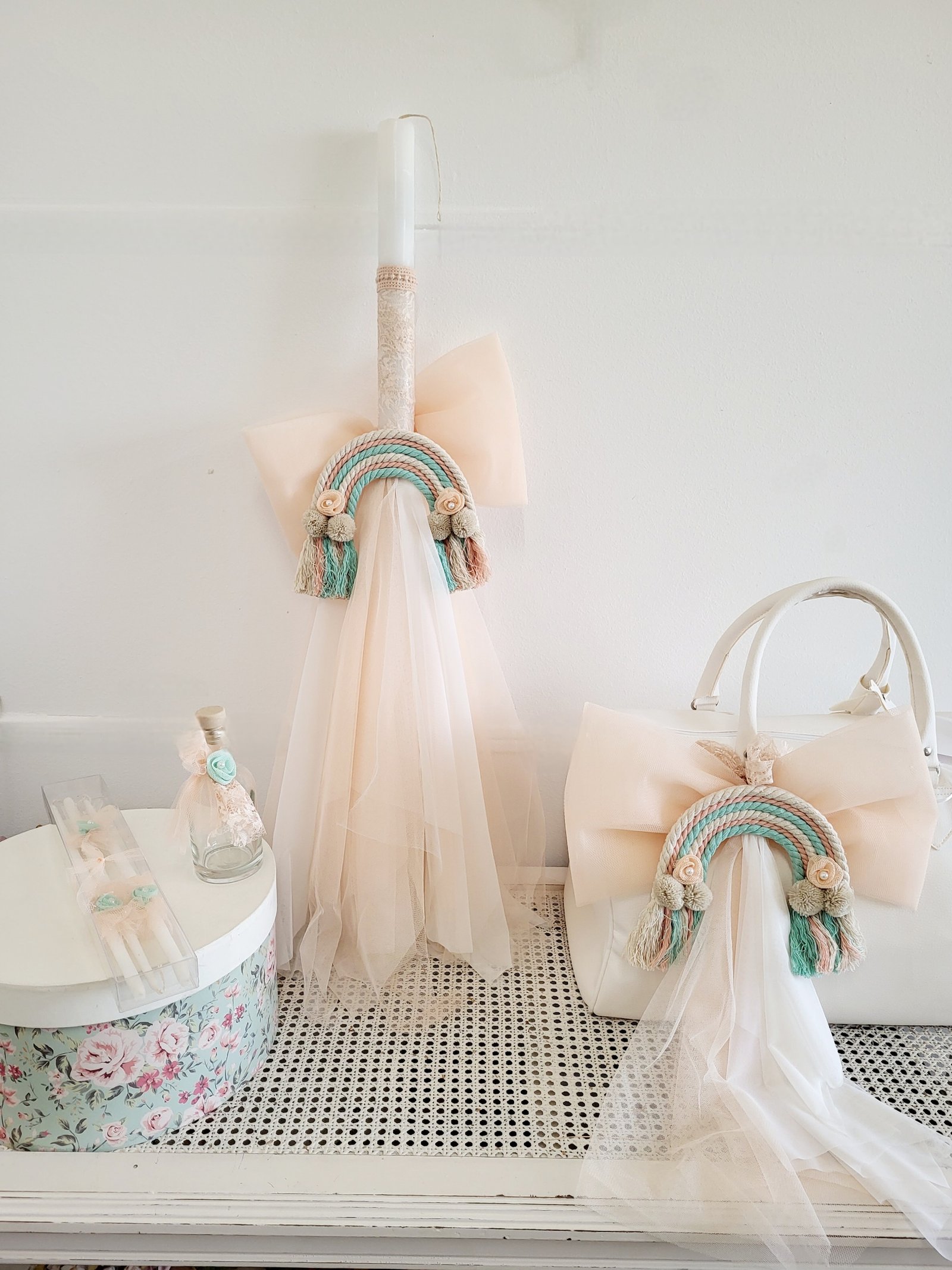 Λαμπάδα με τσάντα και ασορτι λαδοσέτ.