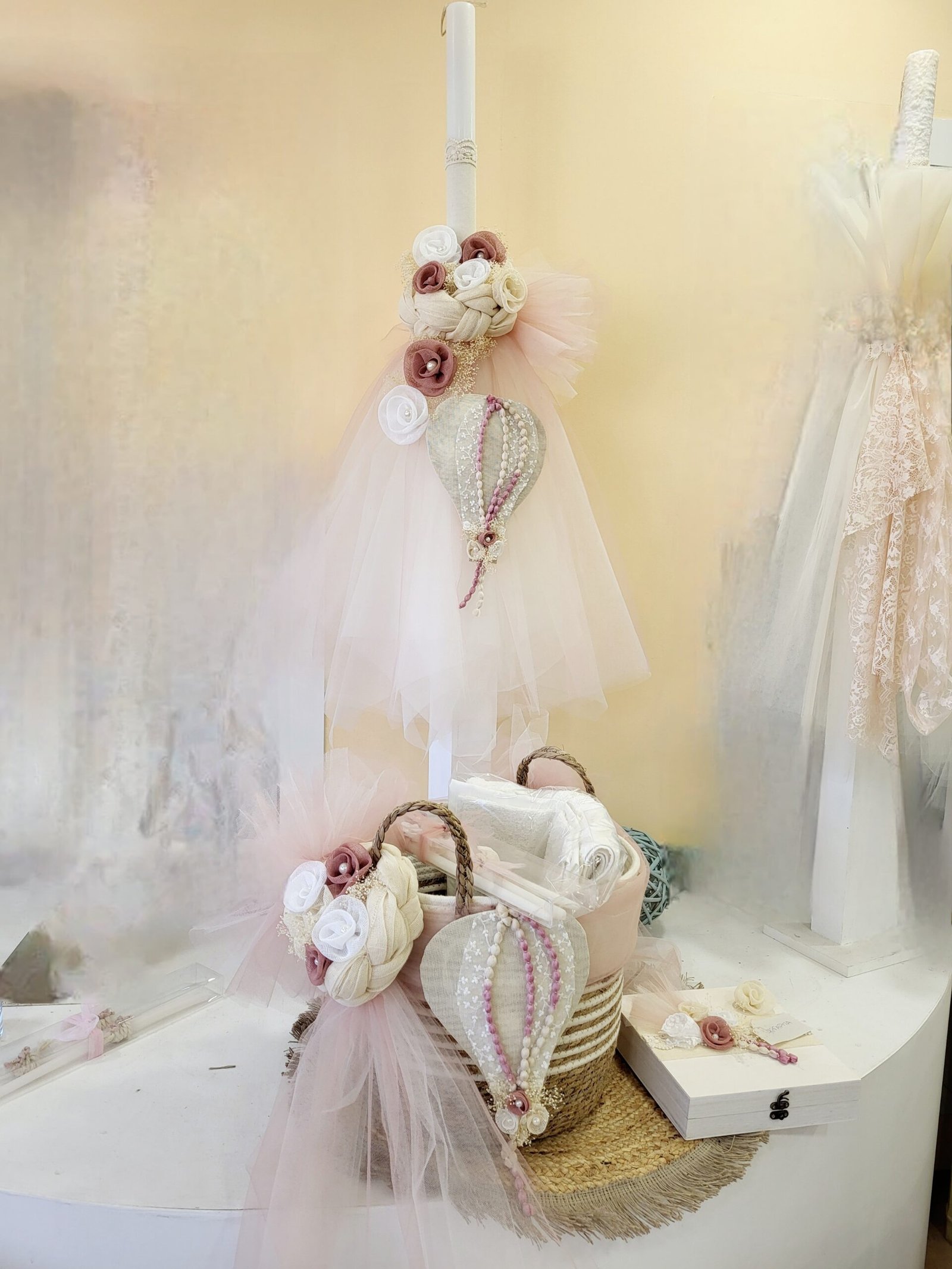 Σετ βάπτισης με Λαμπάδα, Καλάθι ασσορτι στολισμένο, λαδοσετ